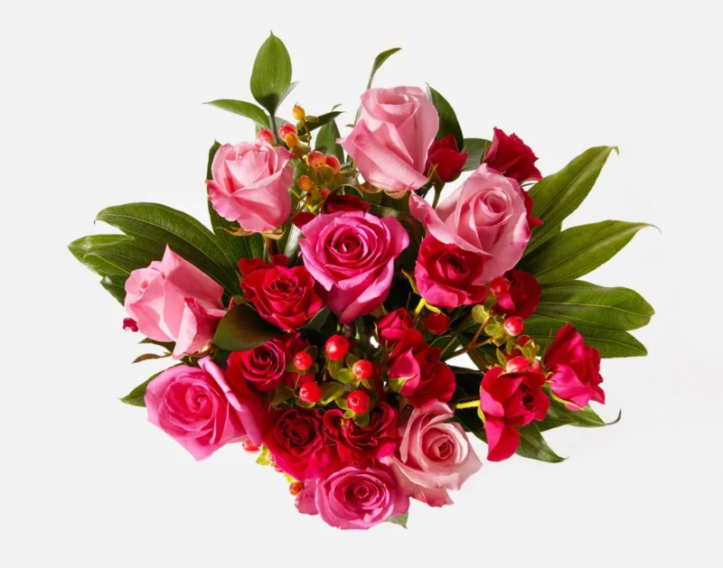 Indulge in the timeless elegance of Rosé Allure, a bouquet that embodies romance, sophistication, and charm. A luxurious blend of lush roses and delicate spray roses in shades of blush and deep crimson sets the stage for a breathtaking display of beauty. Accented by vibrant Hypericum berries, this arrangement adds a touch of warmth and richness, while fresh greenery provides the perfect contrast, enhancing its natural allure.